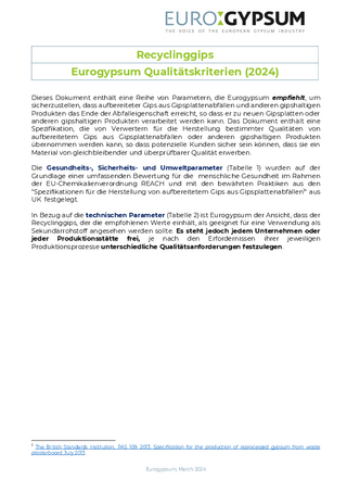 Recyclinggips: Eurogypsum Qualitätskriterien